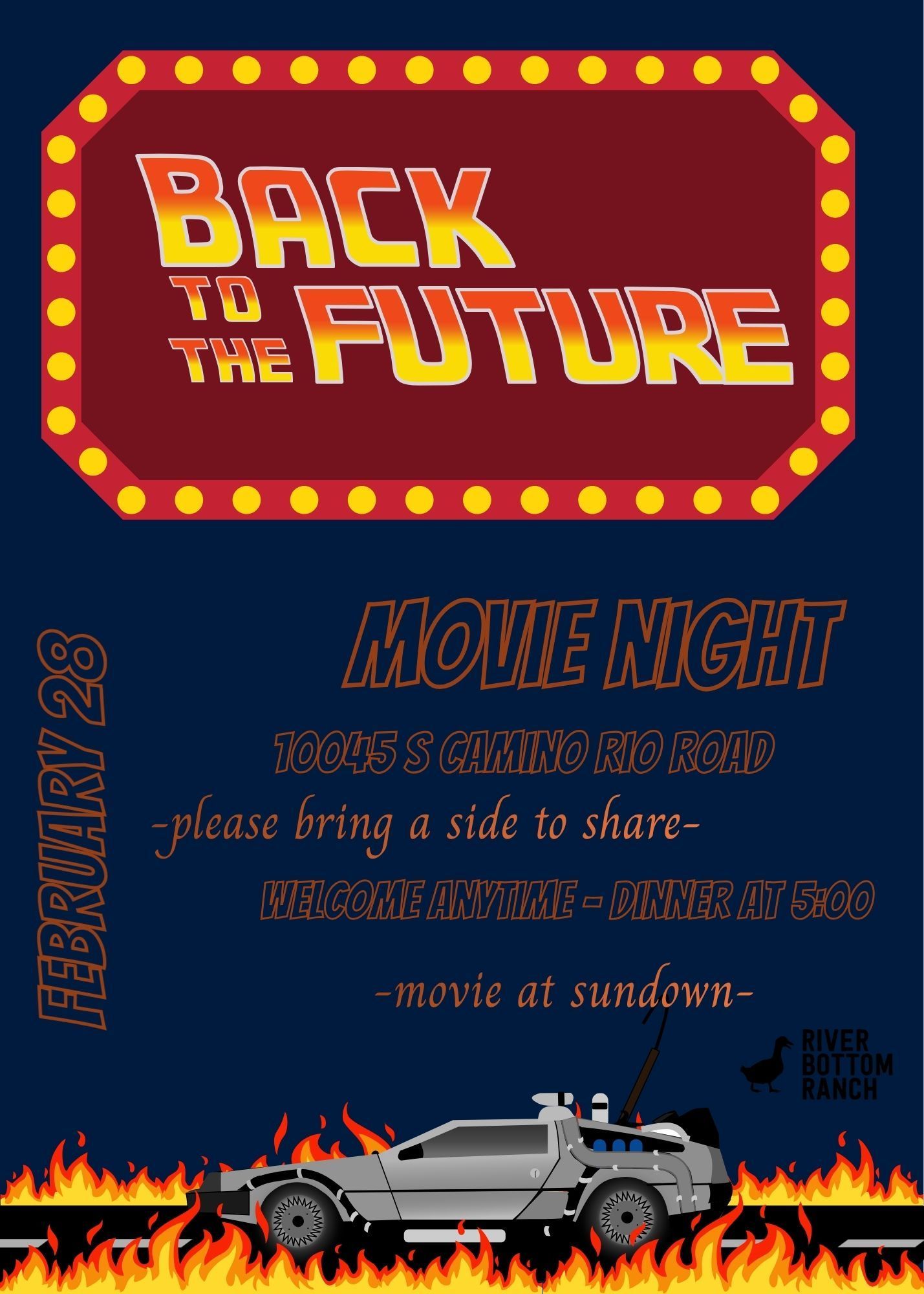 February Mark your calendars for our next movie night! Join us anytime throughout the day to enjoy time at the ranch, with dinner served at 5pm. As soon as the sun sets, we'll kick off the movie. Feel free to bring your friends along, and a side dish or dessert to share with everyone.